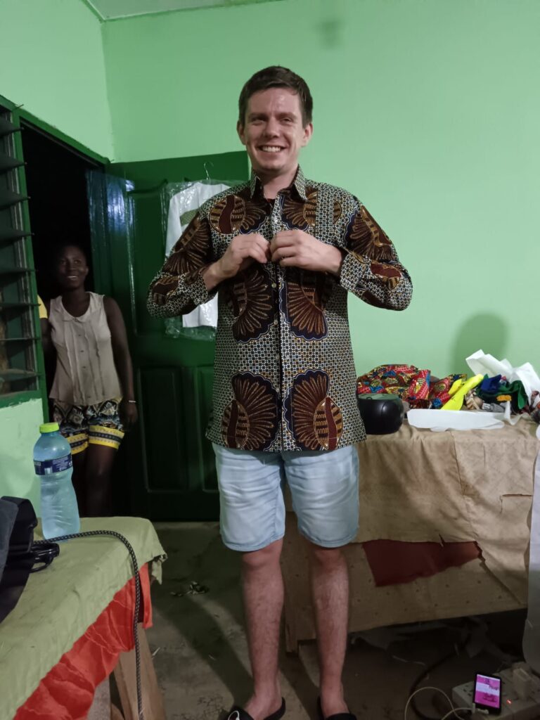 Der Nachfolger von Theresa und Leiter der Schneiderei, Koffi Henry, hat uns mit seinem Team noch jeweils ein neues farbenfrohes Outfit geschneidert, welche wir gern präsentieren.